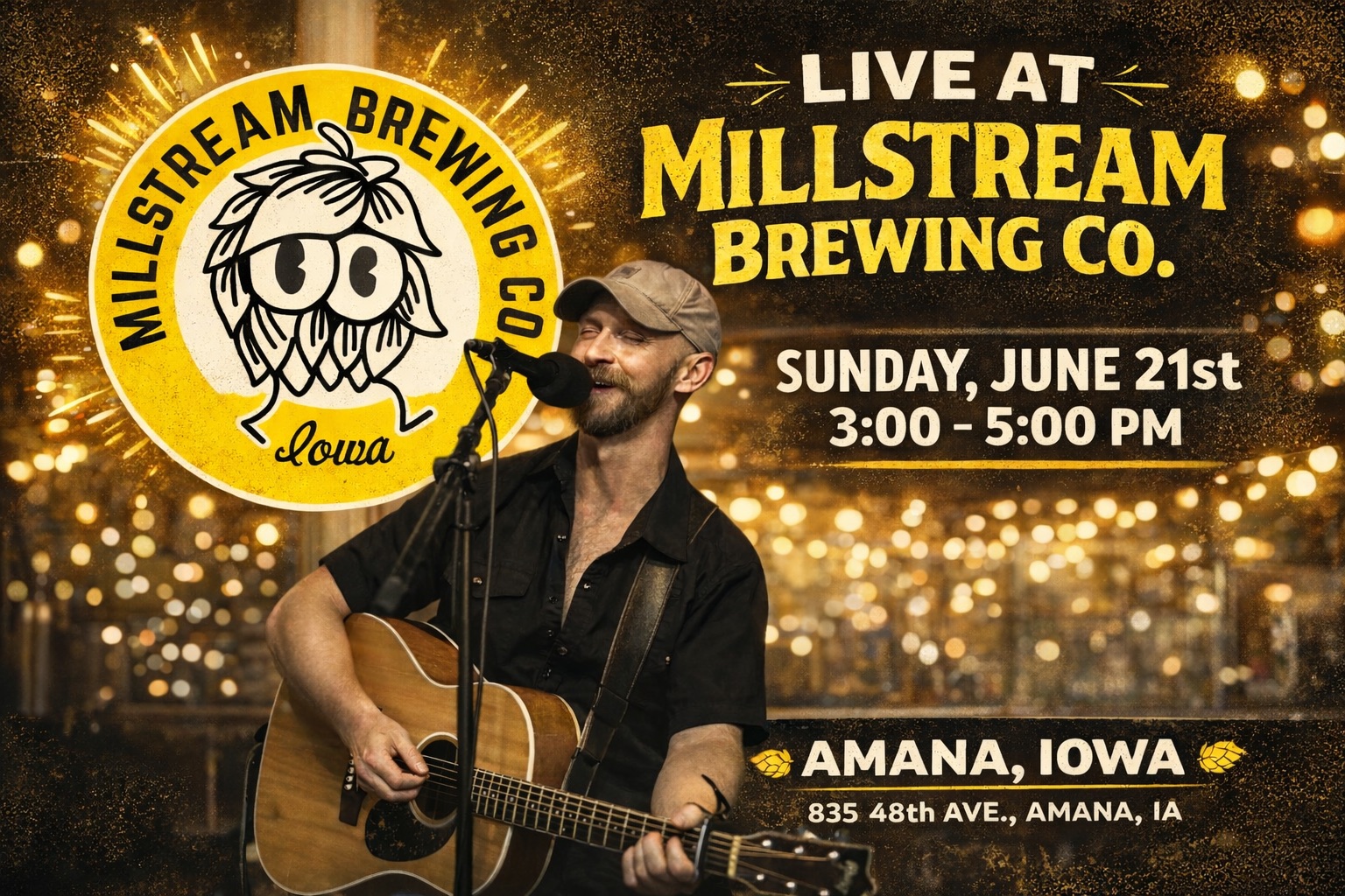 Celebrate dad with a Millstream beer and some live music in the Millstream Brewing Co. biergarten! Solon’s Scott Bogard takes the Millstream Brewing Co. outdoor summer concert stage Father’s Day. You’ll love how he blends country, roots and folk with a laid-back, crowd friendly feel. The perfect Sunday Fun Day is at Millstream!
