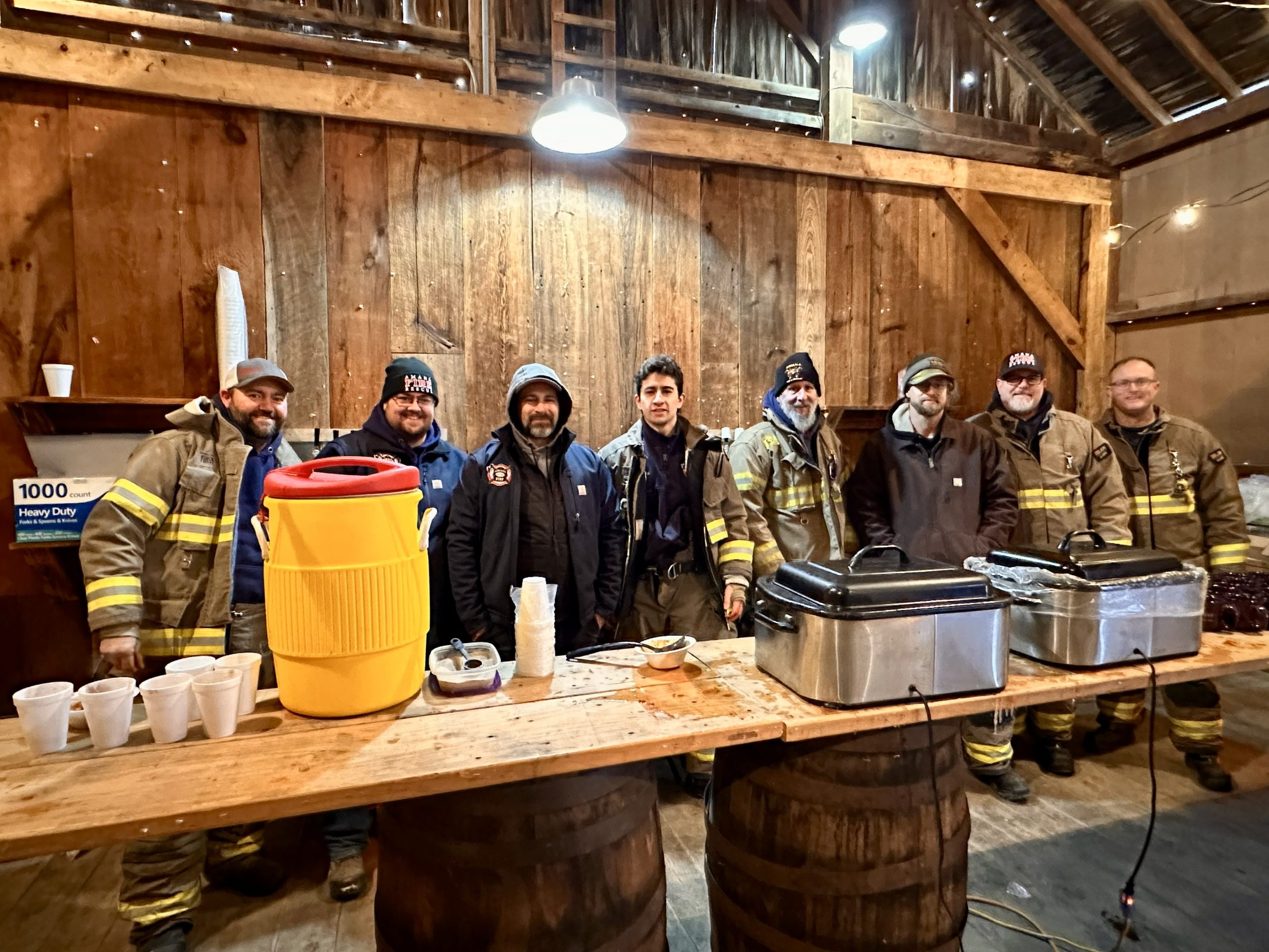 Beginning at 11 a.m., the Market Barn becomes the center of Winterfest activity. The Amana Fire Department will serve open-fire chili, hot chocolate, and cider while supplies last, with proceeds benefiting the department.