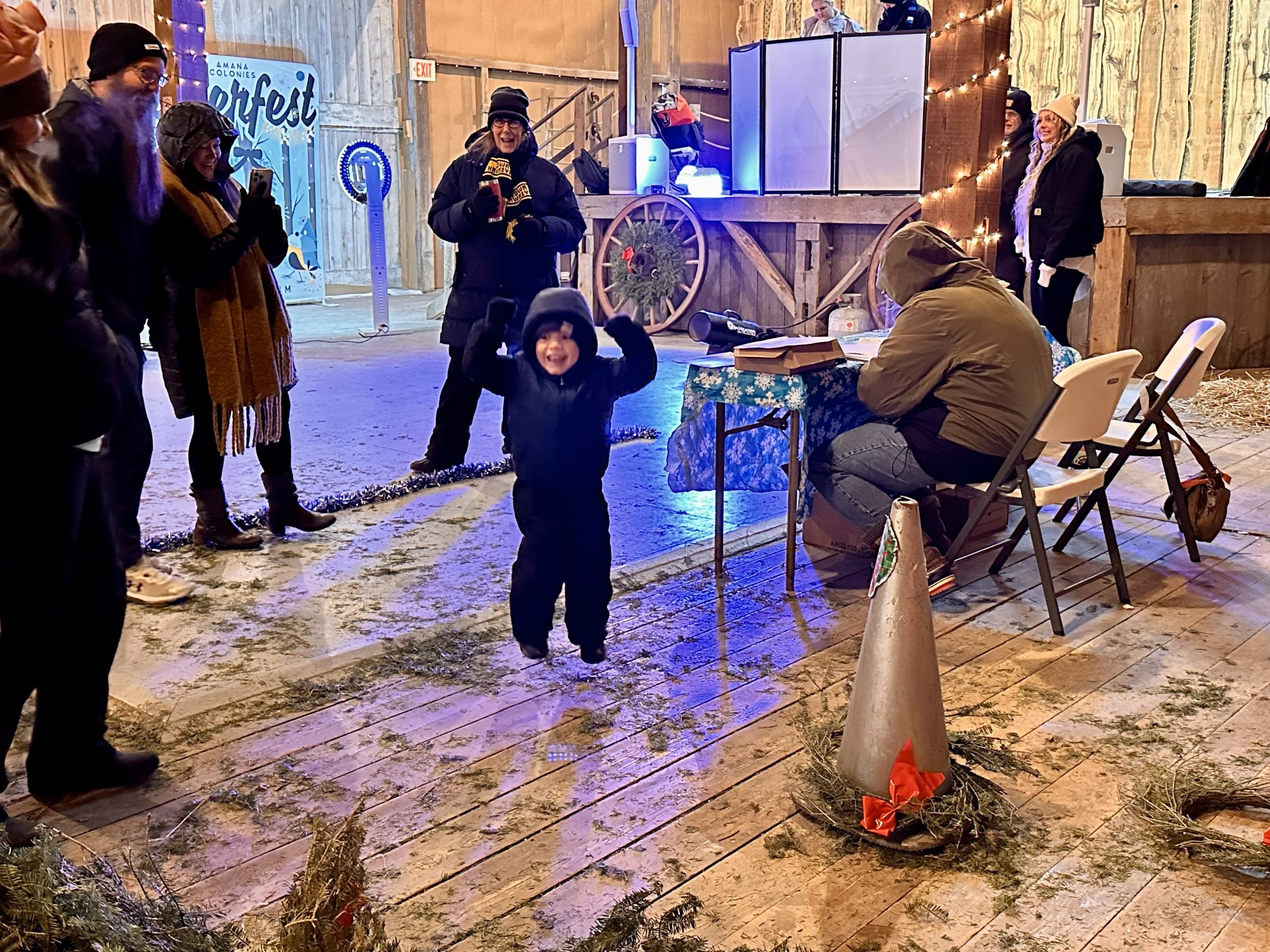 A full day of winter fun, games, music, food, and shopping in Amana, Iowa