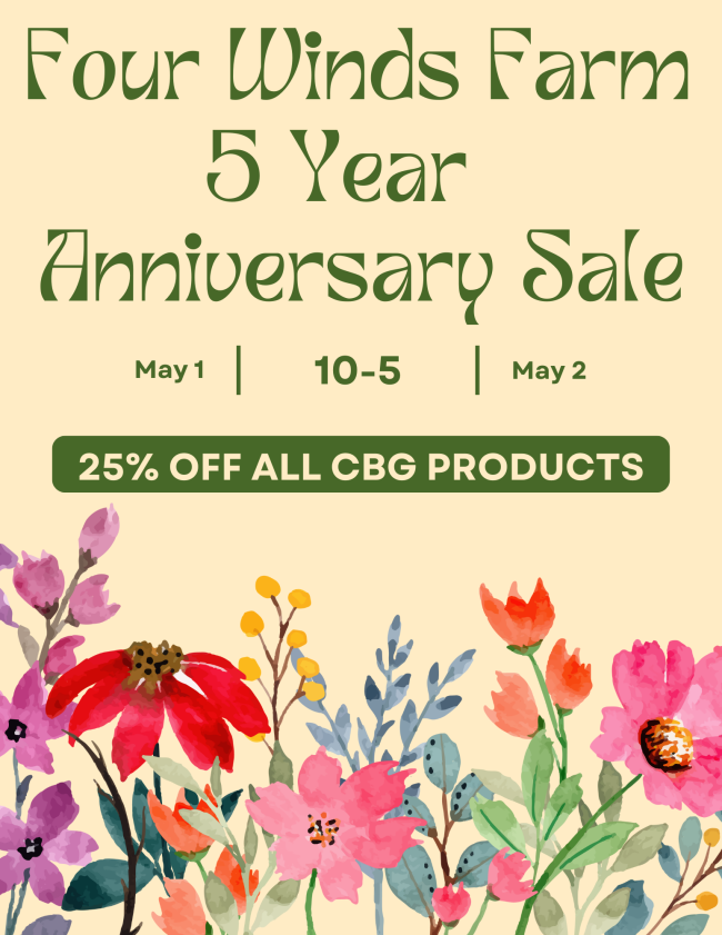 In honor of our 5 year anniversary, we are offering all of our CBG hemp products at 25% off. Â We thank our community for all of your support these past…